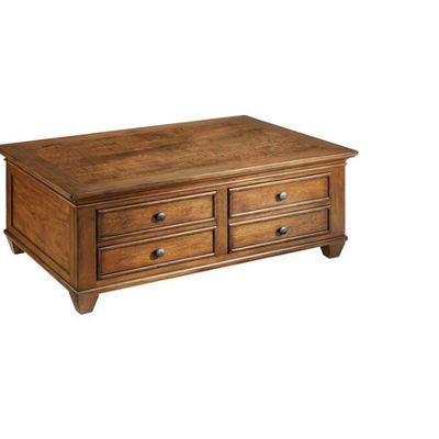You don’t have to be a world traveler to enjoy this coffee table’s warmth and usefulness. The textural character of the wood grain makes it a family-friendly piece that will withstand the test of time. Two drawers on one side and false door fronts on the other.