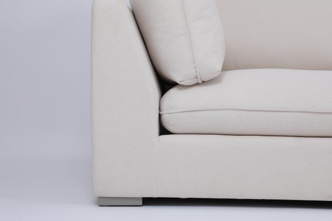 Wooden frame, white seat cushion and backrest filled with duck down, very comfortable sitting and leaning. |