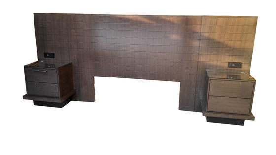 King size wooden hotel headboard with 2 night standss , hospitality casegoods , hotel furniture