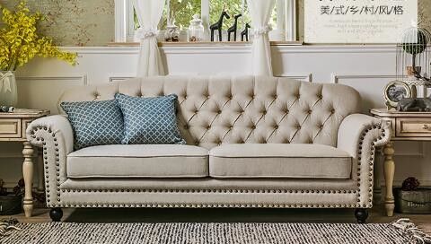 Linen fabric tufted upholstery American style 3-seater sofa , living room sofa